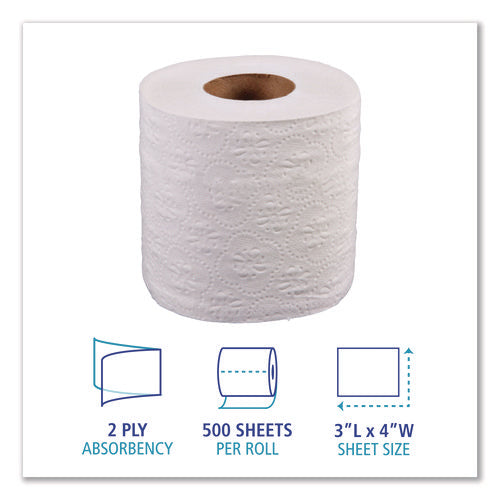 Quality, durable toilet tissue that's soft and absorbent, yet available at an economical price. Two-ply, durable, embossed white tissue on a standard size perforated roll. Individually wrapped for maximum cleanliness and safety. Tissue Type: Toilet;