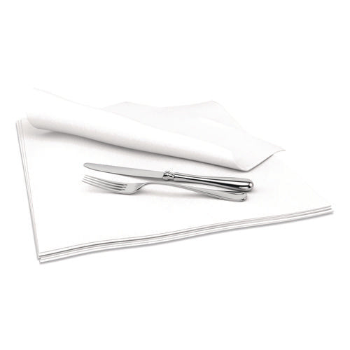 High-quality, economical dinner napkins are ideal in high traffic dining settings. They're a great choice for quick service and fast food restaurants. Material(s): Paper; Color(s): White; Width: 15"; Depth: 15".