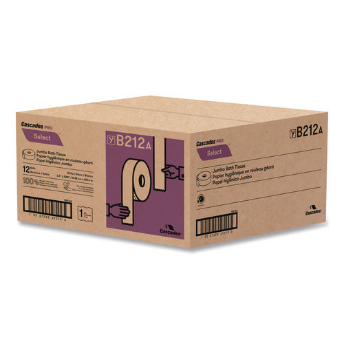 Cascades Select Jumbo Bath Tissue, Septic-Safe, 1-Ply, White, 3.3" x 2,000 ft, 12 Rolls/Carton