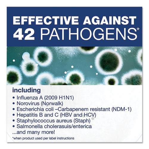 - Kills 99.9% of bacteria and viruses in one minute (see EPA master label for full list of organisms and contact times).