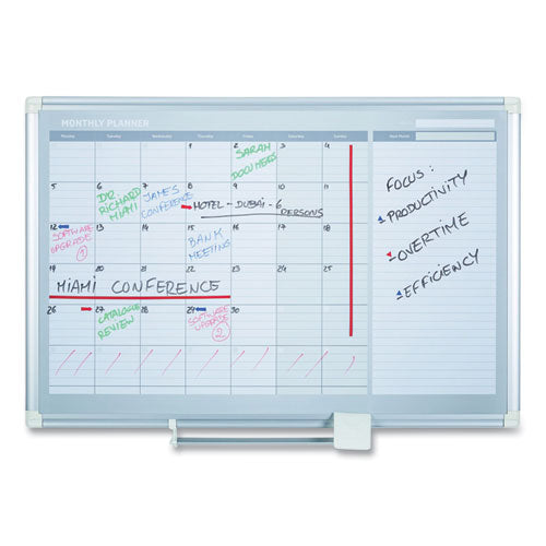 MasterVision® Magnetic Dry Erase Calendar Board, Monthly Planning/Scheduling, 36" x 24", White Surface, Satin Aluminum Frame