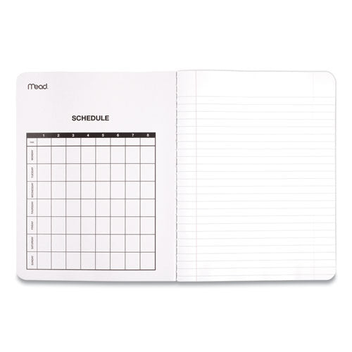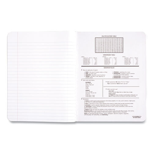 Durable black marble cover with modern nameplate and secure sewn binding. Class schedule grid on inside front cover. Multiplication table, conversion table and grammar rules on inside back cover. Pocket-Sized Indicator: No; Book-Binding Type: Sewn; B