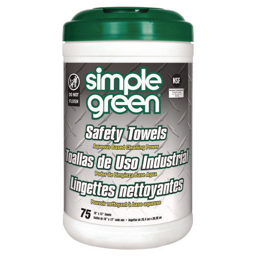 Simple Green® Safety Towels, 1-Ply, 10 x 11.75, White, Unscented, 75/Canister