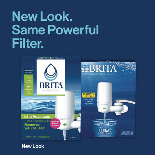 Brita® Water Faucet Mount Filtration System with 1 Elite Advanced Replacement Filter, White, 4/Carton