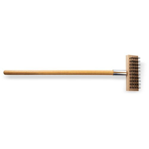 High-strength metal bristles remove carbon deposits, rust, burned-on food buildup from high-temperature ovens and grills. Stainless steel scraper loosens debris for a deeper clean. Built to last even in busy kitchens. Finished with long, sturdy wood