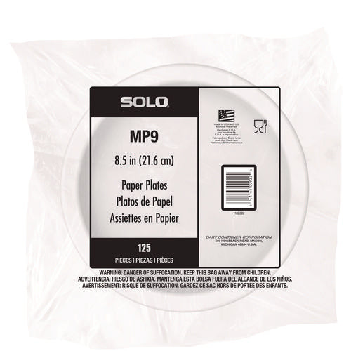 Image of SOLO® Compostable Paper Dinnerware, ProPlanet Seal, Plate, 9" dia, White, 250/Carton