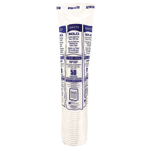 SOLO® Double Sided Poly (DSP) Paper Cold Cups, 16 oz, White, 50 Cups/Sleeve, 20 Sleeves/Carton