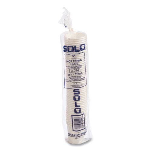 SOLO® Single-Sided Poly Paper Hot Cups, 4 oz, White, 50 Bag, 20 Bags/Carton