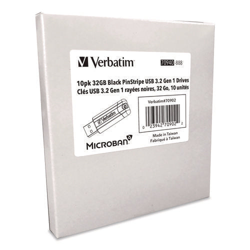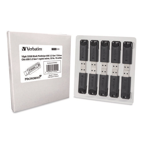 Verbatim® Pinstripe USB 3.2 Flash Drive, 32 GB, Black 10/Pack