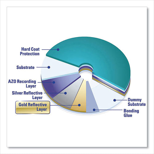 - Gold layer maximizes disc lifetime by protecting data from corrosion.