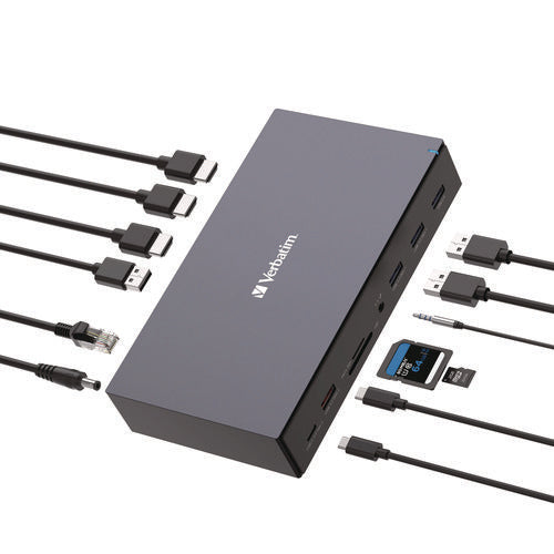 SKU: VER32172 Manufacturer: VERBATIM CORPORATION Mfr. Part Number: 32172 Brand Name: Verbatim® Alternate Part Numbers: VER32172, VER-32172, 32172, 50023942321724 (GTIN), 00023942321729 (GTIN) Country of Origin: VN (VIET NAM) TAA Compliant: No UNSPSC Code: 0043222610 Unit of Measure: EA (1 Each) UPS Shippable: Yes Air Shippable: Yes Item Dimensions: 9.57 in. x 6.89 in. x 2.60 in. Weight: 2.6800 lb. Expiration Date: No Warranty Information: Manufacturer's limited two-year warranty. Keywords: USB-C Pro Docking Station; 15-in-1; Docking Station; Laptop Docking Station; Docking; Dock; HP Docking Station; Dell Docking Station; Docking Station for Laptop Environmental Properties