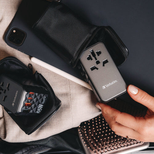 Verbatim® UTA-05 Gan III Universal Travel Adapter, (2) USB-A/(2) USB-C/Quick Charge 4+