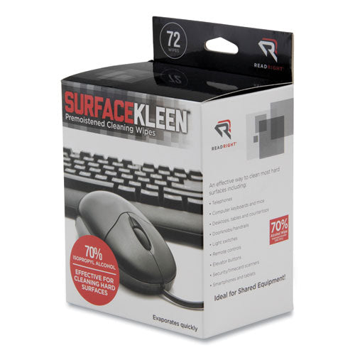 Effectively clean hard surfaces with Read Right SURFACEKLEEN Pre-Moistened Cleaning Wipes. Formulated with 70% IPA to clean most hard nonporous surfaces and evaporates quickly, leaving nearly zero oil traces. Safe for use on most smartphones and tabl