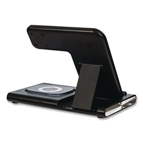 • Charge three items on one compact station to keep your devices organized and eliminate the need for multiple electrical outlets.